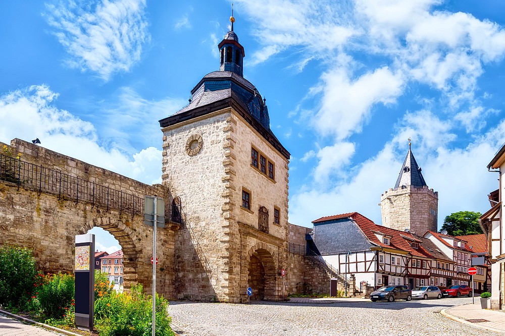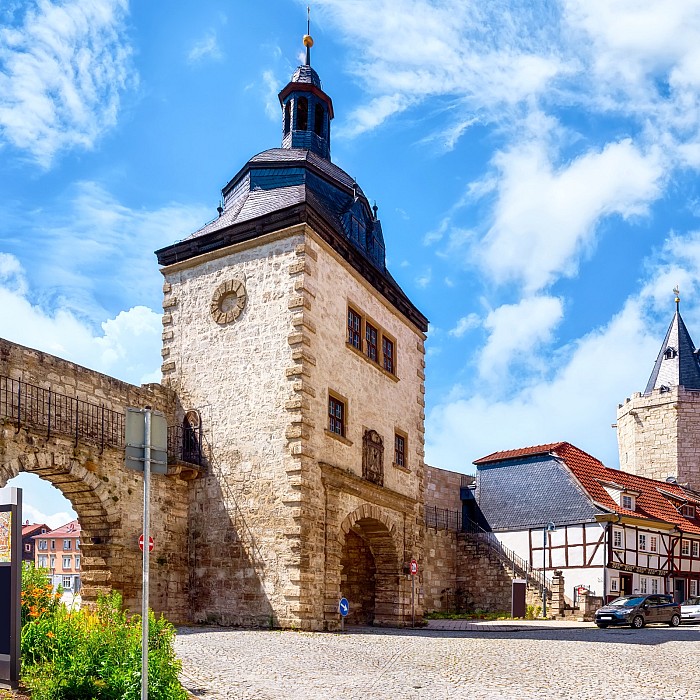 Mühlhausen ist eine Stadt voller Geschichte und Tradition. In nur wenigen Gehminuten erreichen Sie den historischen Stadtkern, wo Sie das mittelalterliche Flair der Stadt genießen können. Besuchen Sie die imposante Marienkirche, die als eine der bedeutendsten gotischen Kirchen Thüringens gilt, oder das Rathaus, das im Stil der Weserrenaissance erbaut wurde. Wer mehr über die Geschichte der Region erfahren möchte, sollte das "Kunst- und Kulturhistorische Museum" in der Altstadt nicht verpassen.